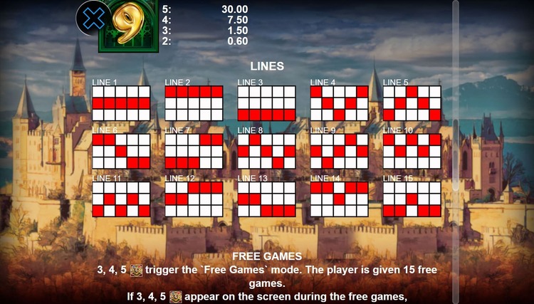 | Герб (Scatter) | 9 | 22,5 | 45 | 450 |