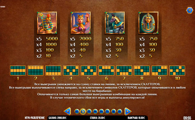 | Маска фараона, Анубис | 5 | 30 | 100 | 750 |