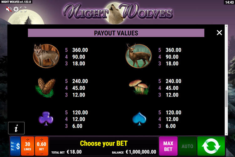 | Воющий волк (Wild) | 30 | 150 | 600 |