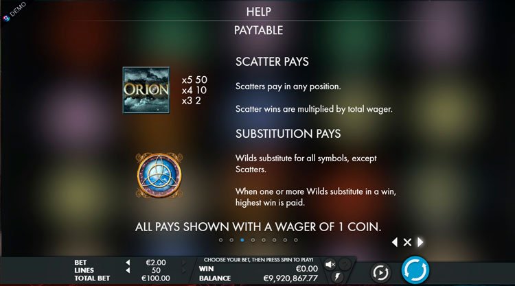 | Логотип игры (Scatter) | 2 | 10 | 50 |