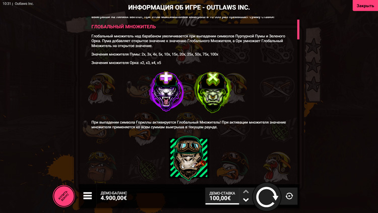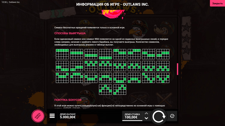 Таблица выплат Outlaws Inc