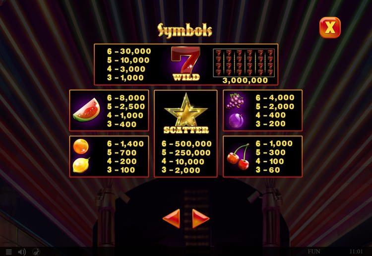 | Семерка (Wild) | 1 000 | 3 000 | 10 000 | 30 000 |