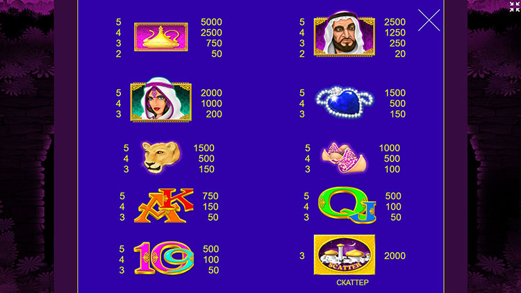 | 9, 10, J, Q | - | 50 | 100 | 500 |
