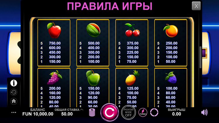 | Тройной Бар | 10 | 20 | 30 | 40 | 50 |