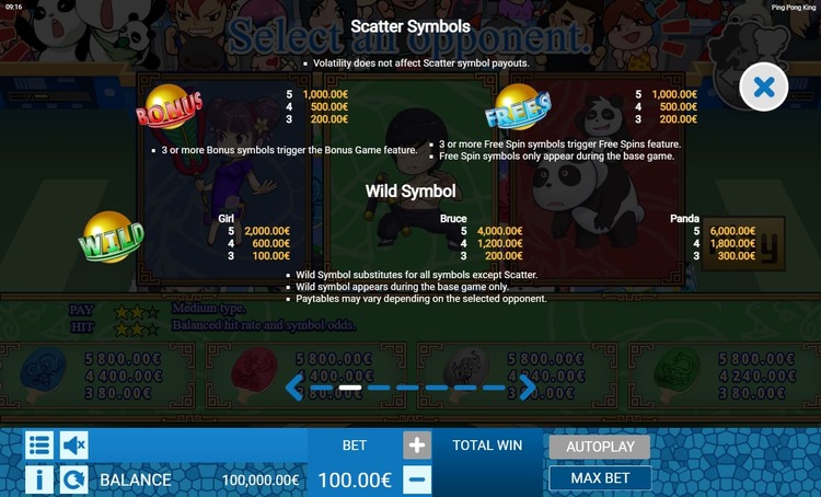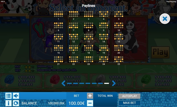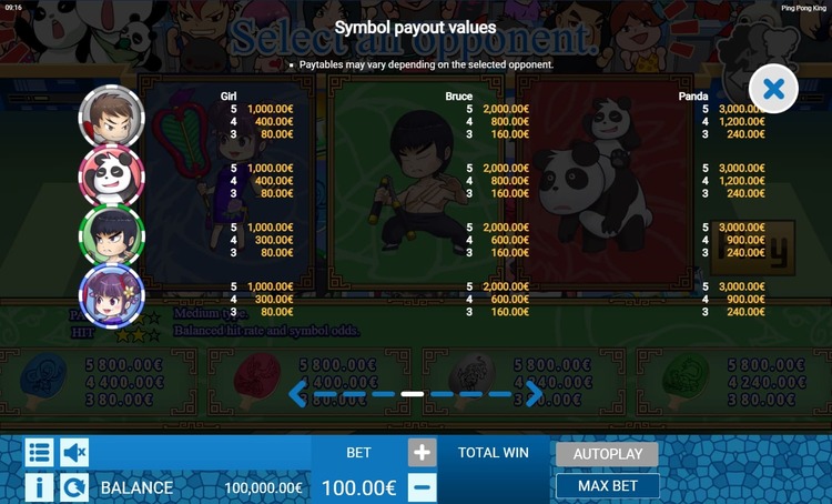 Таблица выплат Ping Pong King