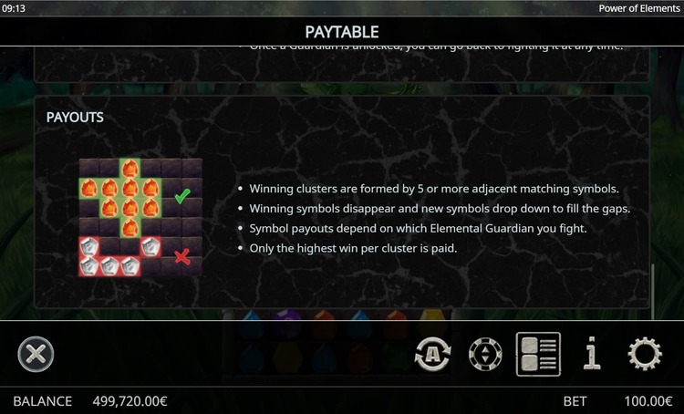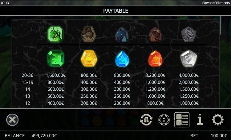 Таблица выплат Power of Elements