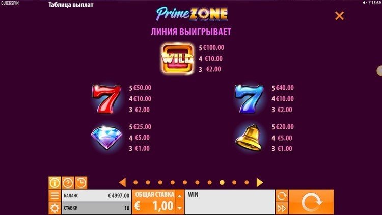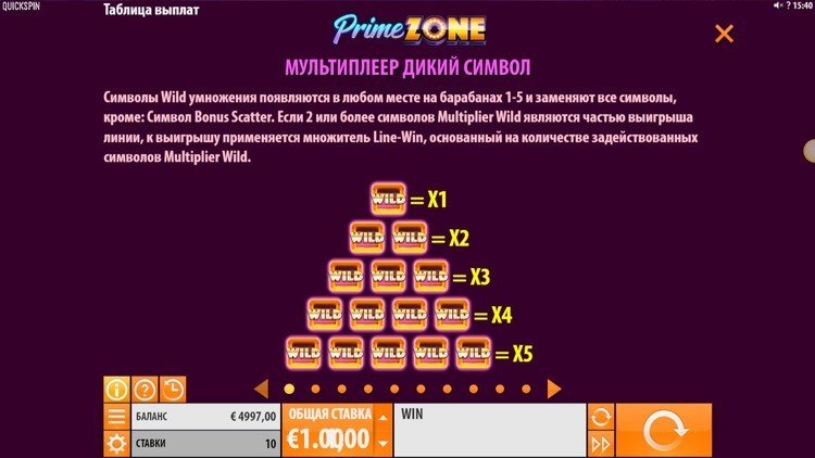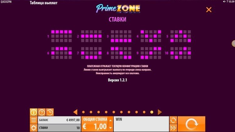 Таблица выплат Prime Zone