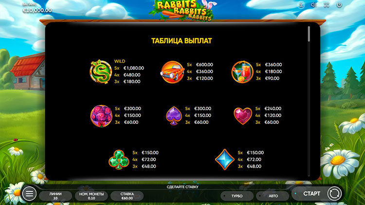 | Знак доллара (Wild) | 180 | 480 | 1080 |