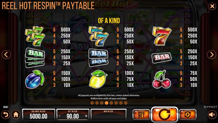 | Три любых Семерки, Три любых Бар | - | 5 | 20 | 50 |