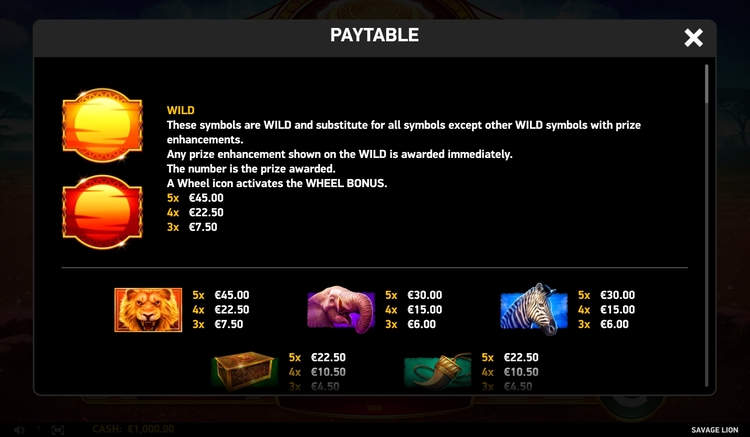 | Лев, Солнце (Wild) | 7,5 | 22,5 | 45 |