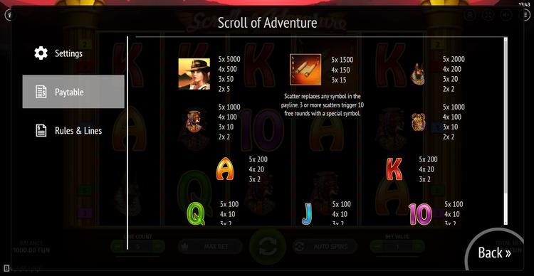| Свиток (Wild, Scatter) | - | 15 | 150 | 1500 |