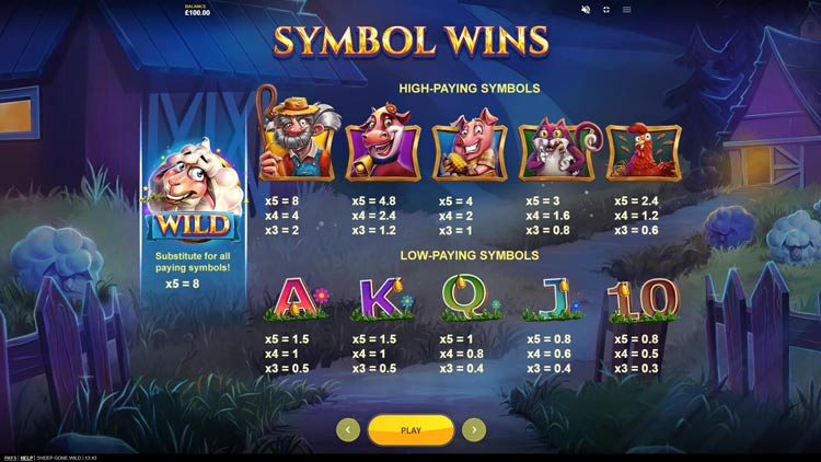 Таблица выплат Sheep Gone Wild