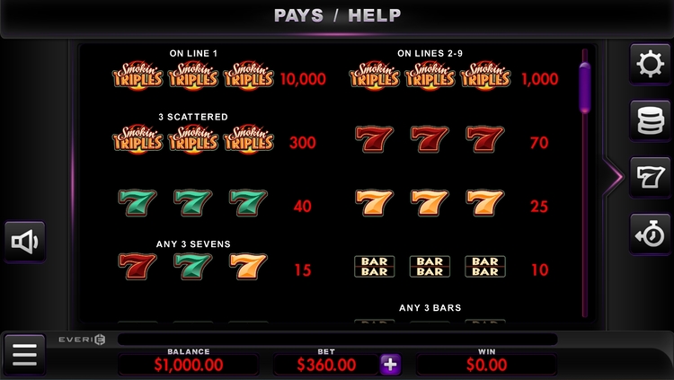 Таблица выплат Smokin Triples