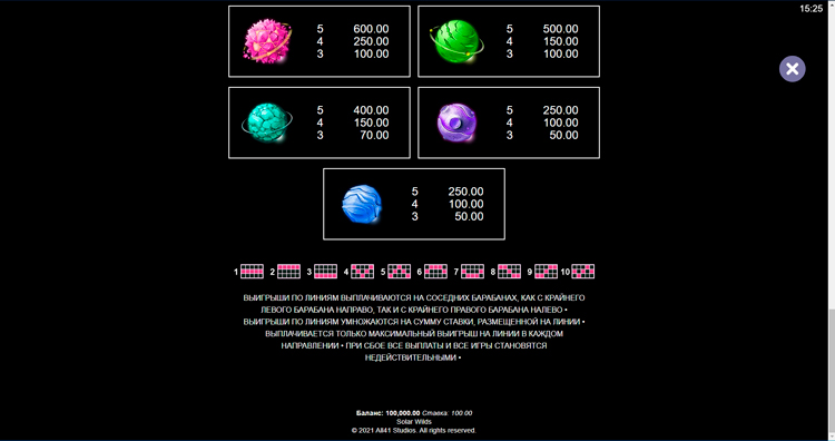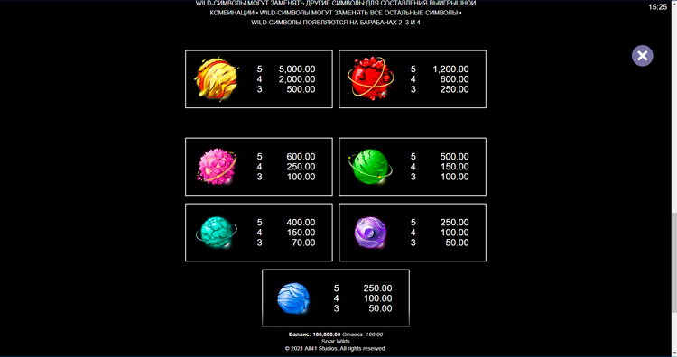 | Синяя, Фиолетовая планеты | 50 | 100 | 250 |