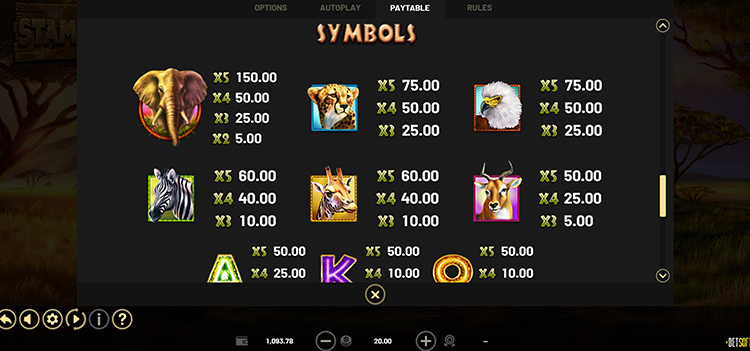 Таблица выплат Stampede