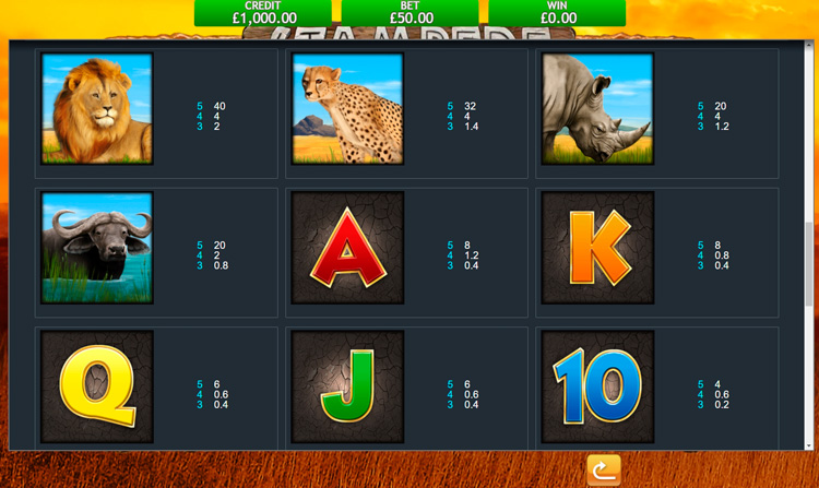Таблица выплат Stampede