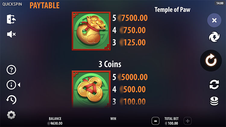| Лапа (Wild) | 250 | 1250 | 12 500 |