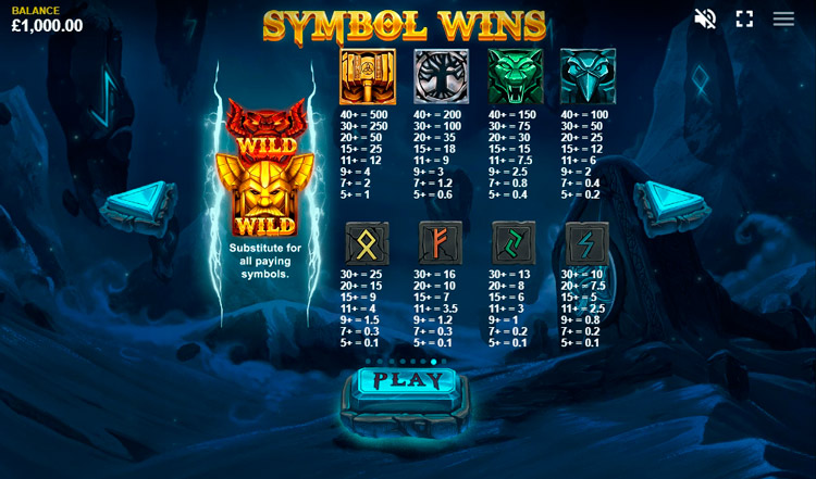 Таблица выплат Thor’s Lightning