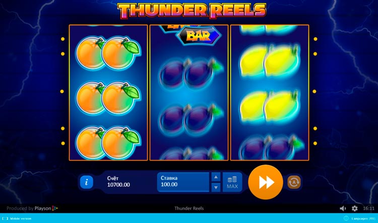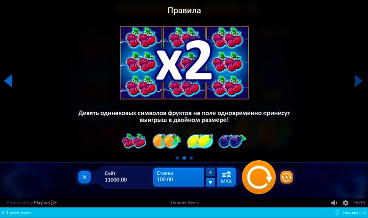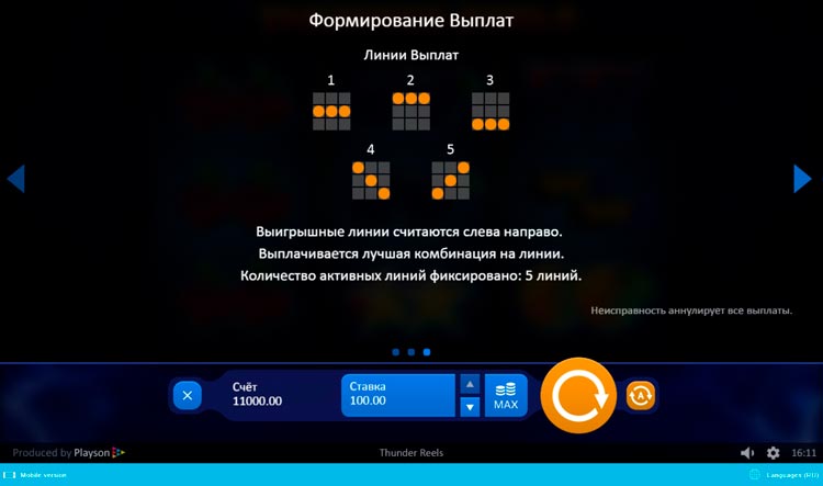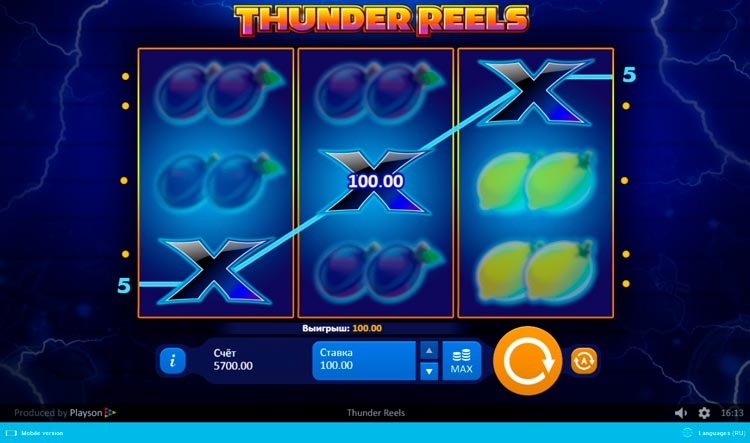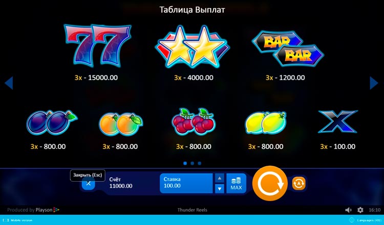 Таблица выплат Thunder Reels