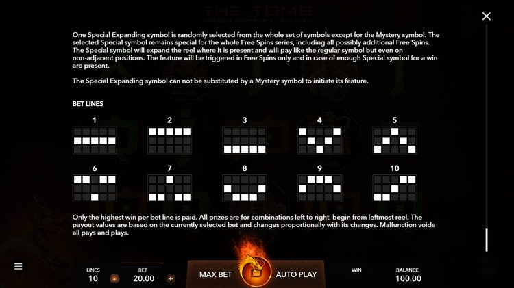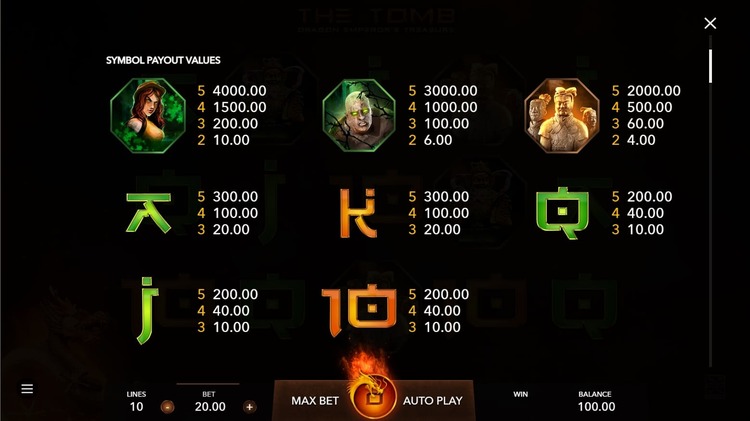 Таблица выплат The Tomb