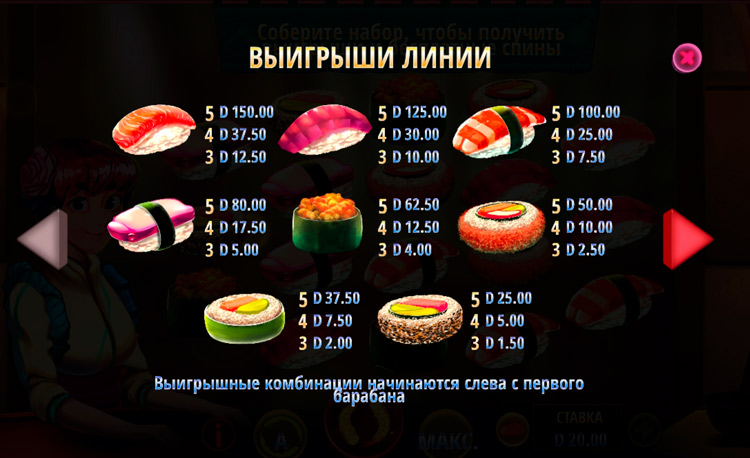 | Гункан с икрой | 4 | 12,5 | 62,5 |
