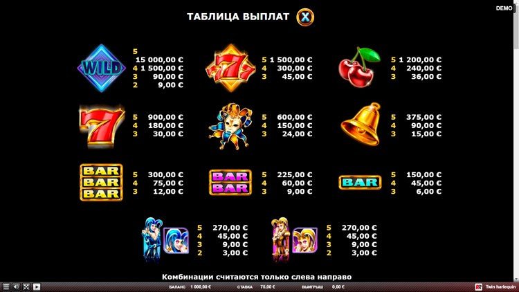 Таблица выплат Twin Harlequin