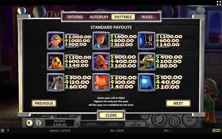 Таблица выплат Under the Bed