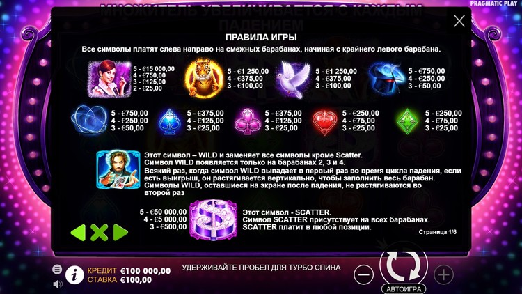 | Знак доллара (Scatter) | - | 500 | 5 000 | 50 000 |