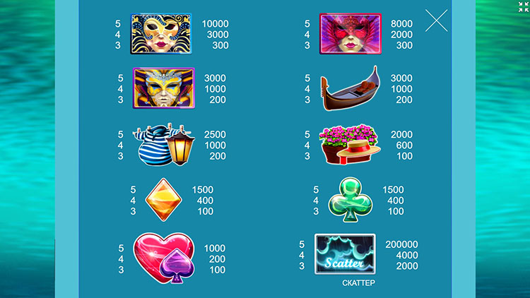 Таблица выплат Venetian Rain