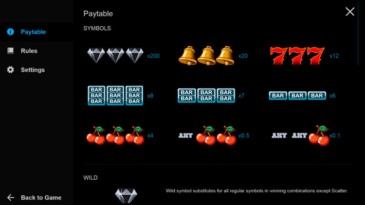 Таблица выплат Western Reels