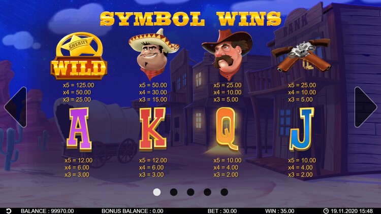 | Звезда шерифа (Wild) | 25 | 50 | 125 |