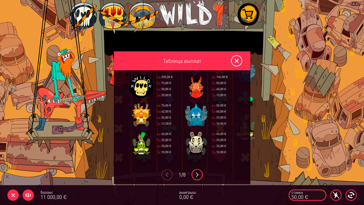 | Череп (Wild) | 20 | 50 | 75 | 250 |