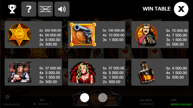 | Жетон шерифа | 500 | 5 000 | 50 000 | 250 000 |