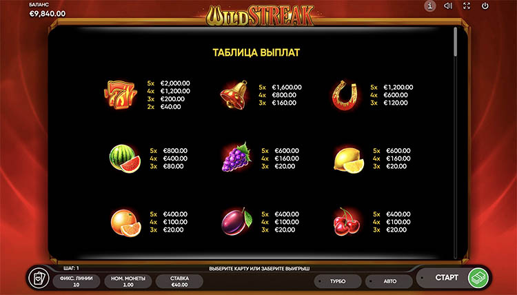 | Семерки | 40 | 200 | 1200 | 2000 |