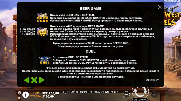Таблица выплат Wild West Duels