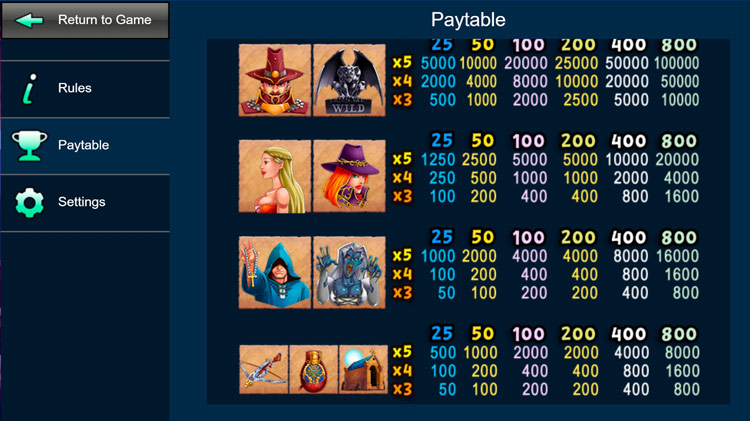 | Вампир, Священник | 50-800 | 100-1 600 | 1 000-16 000 |