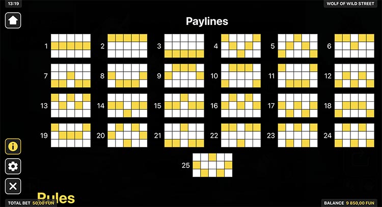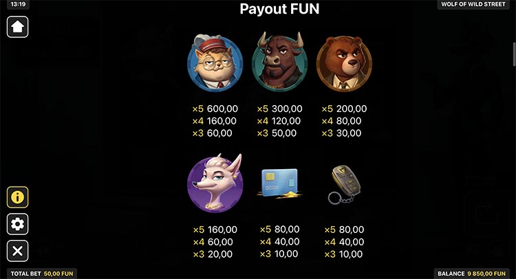 Таблица выплат Wolf of Wild Street
