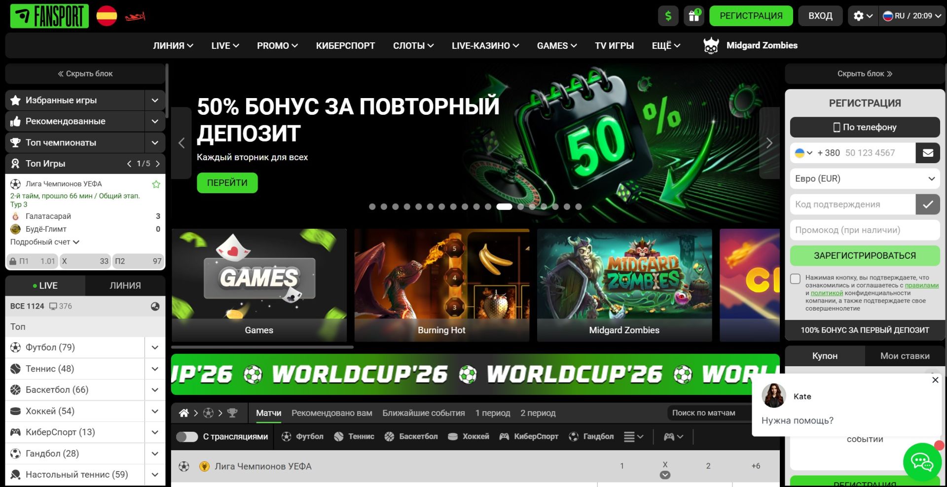 Служба поддержки Фан Спорт работает круглосуточно. Связаться с ней можно через онлайн-чат, электронную почту или телефон. Операторы говорят на русском, английском и украинском языках, отвечают быстро и помогают с любыми вопросами: от верификации до бонусных условий.
