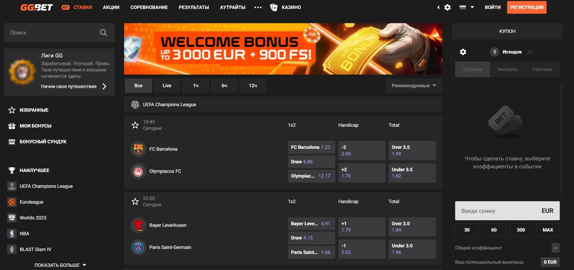 - Фокус на киберспорте — GGBet считается одним из лидеров в этой нише.