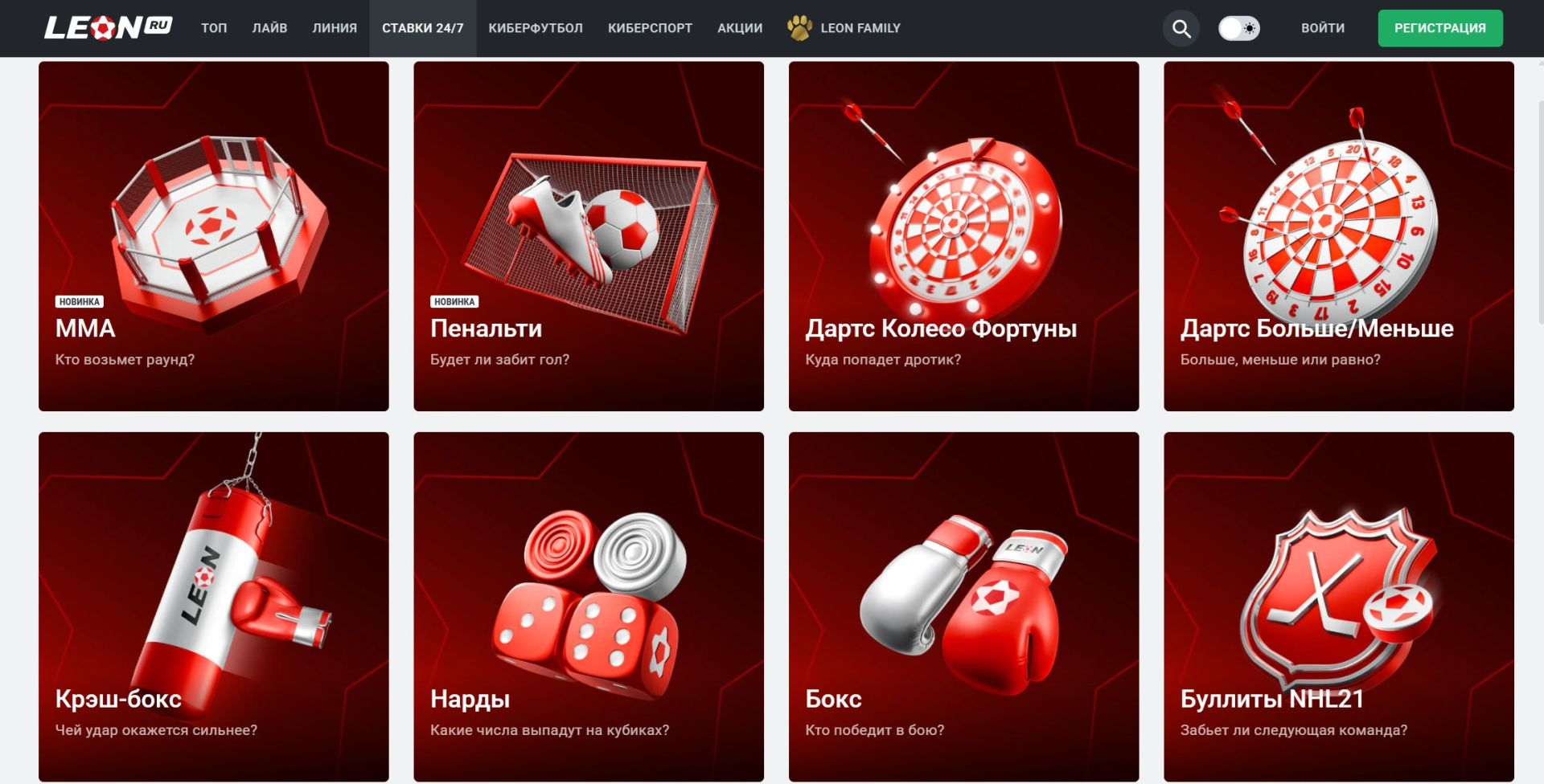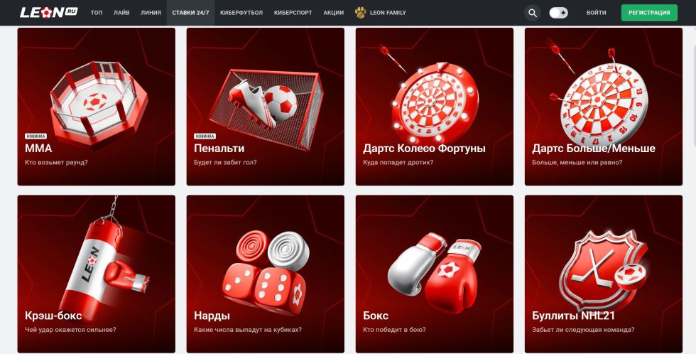 Благодаря низкому порогу входа (от 100 ₽), приветственному фрибету и понятному интерфейсу, Леон можно рекомендовать новичкам.
