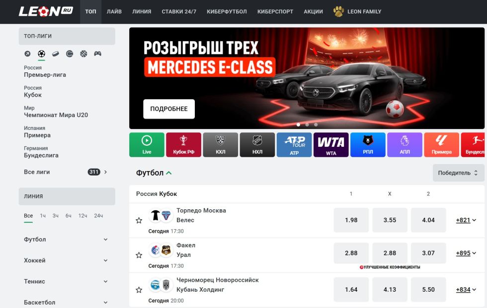 На сайте Leon.ru можно заключать ставки на спорт, лайв-ставки, участвовать в акциях и получать фрибеты. Простая регистрация, удобное мобильное приложение и низкий минимальный депозит делают Леон популярным выбором как среди новичков, так и среди опытных бетторов.