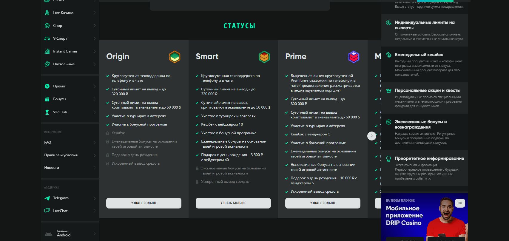 - Перейдите на сайт Drip Casino: Найдите раздел "Мобильное приложение".