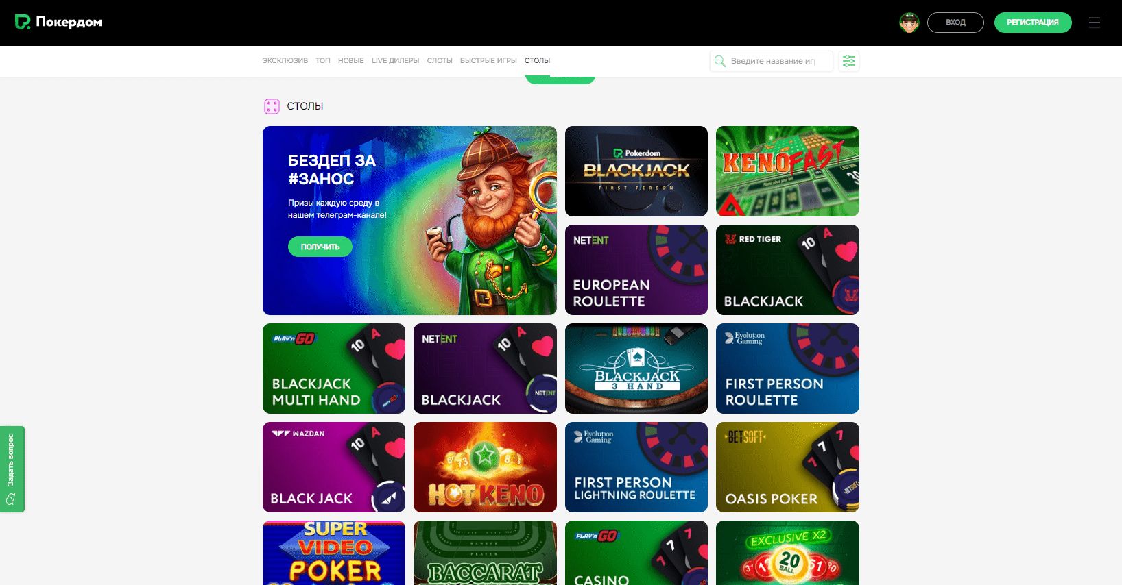 - Игры: Каталог всех доступных игр, включая слоты, настольные игры и покер.
