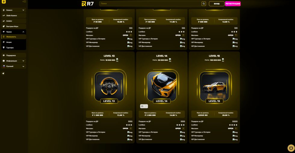 Одним из главных преимуществ r7 casino является обширная программа лояльности. Смысл заключается в продвижении по 15 уровням, на каждом из которых игроков ждет еще больше подарков. В следующей таблице представлены несколько уровней, доступных в рамках программы лояльности, а также возможности, которые открываются по мере достижения каждого из них.