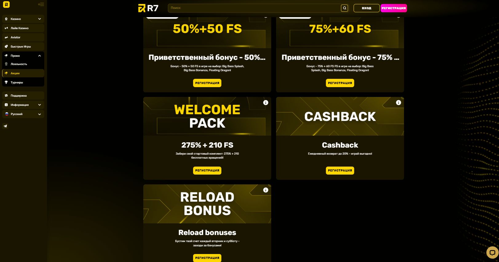 Казино R7 широко известно своей исключительной надежностью и успешностью, постоянно работая над тем, чтобы заинтересовать все категории клиентов. Как только вы пройдете процесс регистрации, можете быть уверены, что ваш первый бонус будет оперативно доставлен вам.